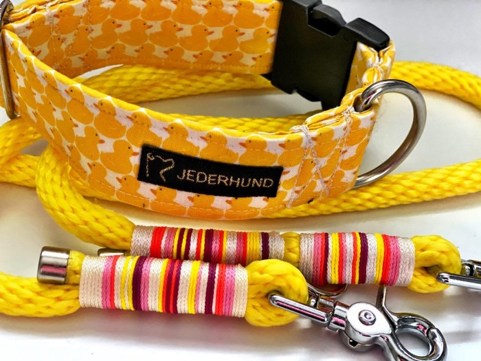Ob beim kurzen Gassi gehen, ausgiebigen Wandern, ausgelassen Spielen in der Hundezone, stolz Flanieren in der Stadt, im Stammcafé geduldig unterm Tisch warten, entspannt mit im Büro oder in den Ferien im hundefreundlichen Hotel, JEDERHUND-Hundemode hat für jeden Anlass und jeden Tag das perfekte Outfit für deinen Hund. Die JEDERHUND-Hundemode entsteht im Wiener Schneideratelier mit viel Liebe zum Detail und überzeugt mit originellen Designs sowie Funktionalität und Robustheit. Die Halsbänder und Hundegeschirre sind stufenlos in der Weite verstellbar und mit Klick-Verschluss ausgestattet, die Halsbänder auf Wunsch auch mit Zugstopp erhältlich. Bei den Hundeleinen stehen mehrfach verstellbare Führleinen und einfache Leinen mit Griffschlaufe zur Auswahl. Mit funktionellen und chicen JEDERHUND-Accessoires ist Ihr Hund stets sicher an Ihrer Seite und macht dabei immer eine tolle Figur.